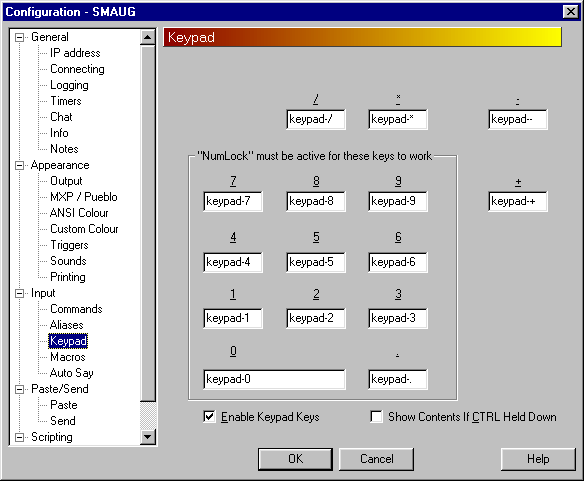 | What is it doing? Is it sending "keypad-0" to the MUD? Is there an error message?