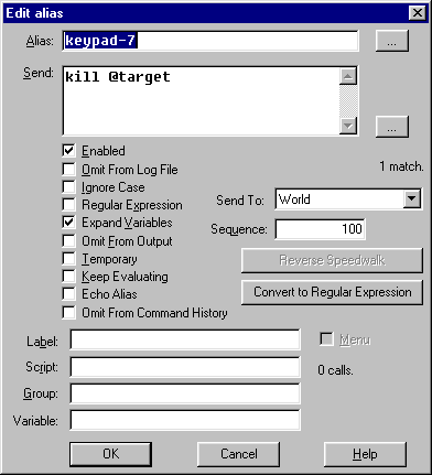 Now pressing keypad '0' will bring up a dialog box asking for the new target name. Enter it and it will be assigned to the variable 'target' which is used in the earlier alias.